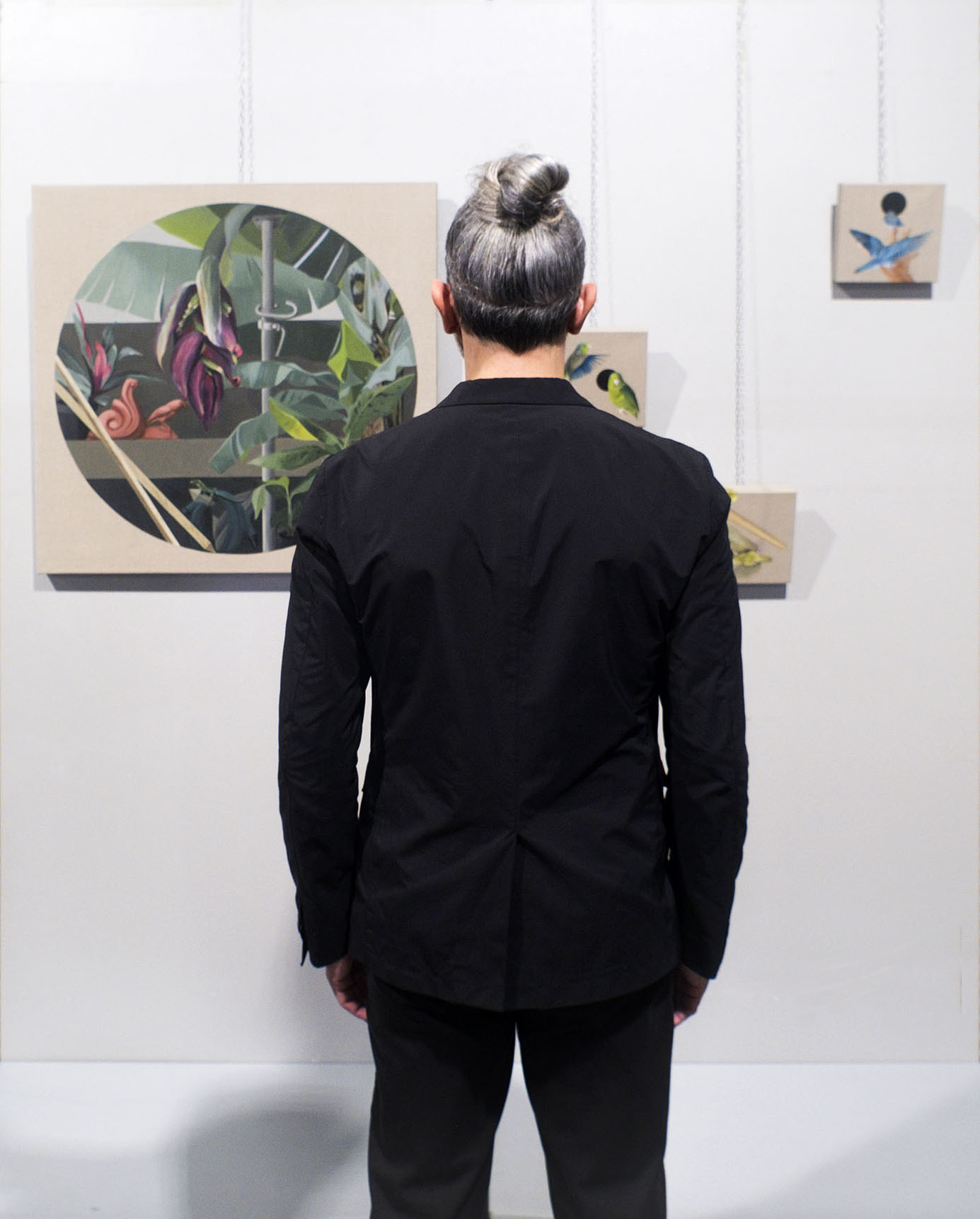 His paintings, permeated by references to naturalism, are marked by the idea of impermanence and the tension between order and chaos. In them, traces of human presence—its noises and vestiges—also emerge as layers that overlap the landscape. In his installations, this investigation expands into space, constituting immersive environments that summon the body and activate relationships between space, nature, and time, configuring experiences of a sensory and relational nature.